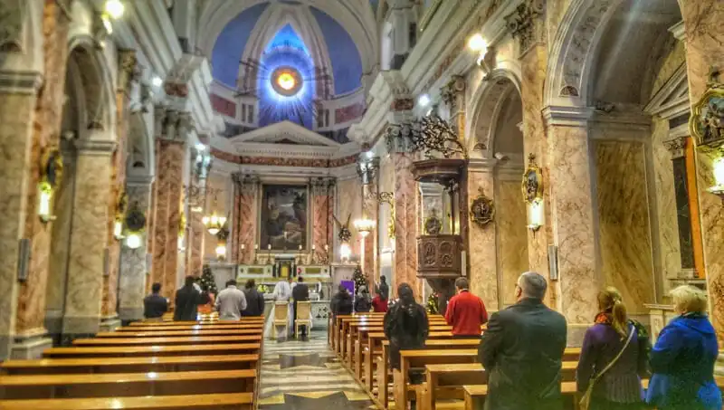 The Crusaders fortified Jaffa and erected a citadel at its highest point; however, later, the Muslims destroyed it. The Saint Peter church was built in the late 19th century CE over the citadel’s medieval remains and subsequent churches. Completed in 1894 and sponsored by Spain, its façade resembles contemporaneous Spanish churches from Latin America. The Baroque-style interior includes various scenes from Peter’s life, as well as images of Spanish saints. Unlike most churches, Saint Peter’s Church in Jaffa faces west, towards the sea. This unusual orientation relates to Peter’s vision, which appeared from the sea. It also alludes to his subsequent sail to Rome in the west.